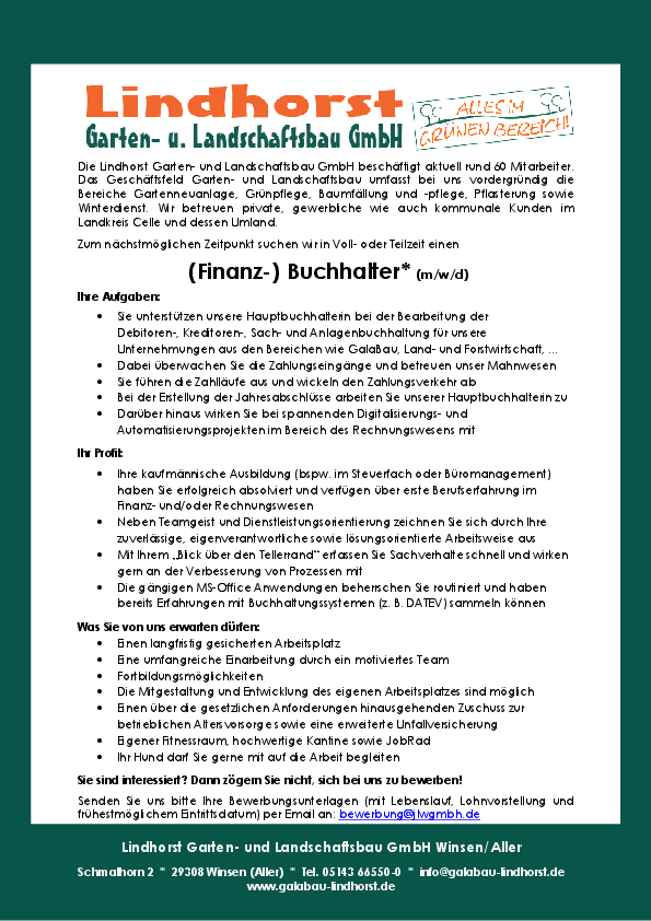 Sie können Ihre Bewerbungsunterlagen gerne an die Mailadresse bewerbung@jlwgmbh.de senden.